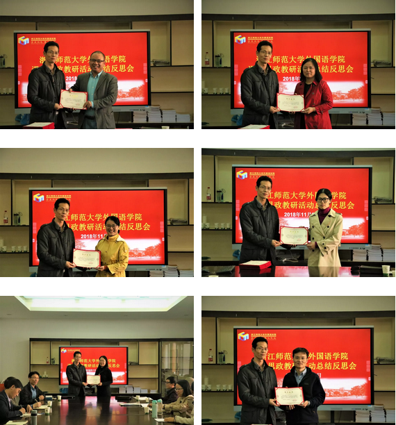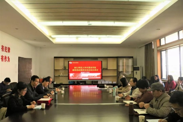 十位教师立足专业课程,精心准备课案,较好呈现了思政与课堂的有机融合。至此,为期一周的外国语学院“课程思政教研活动展示周”活动圆满落幕。11月9日下午,学校本科教学部副主任温建明、本科教学部教学研究科科长徐展斌,学院党委书记俞明祥,教学督导陈昌义、徐林发、周心红以及我院各系部负责人、教研室教师共同参与本次“课程思政教研活动展示周”总结反思会。会议由学院党委委员、日语系主任徐微洁主持。