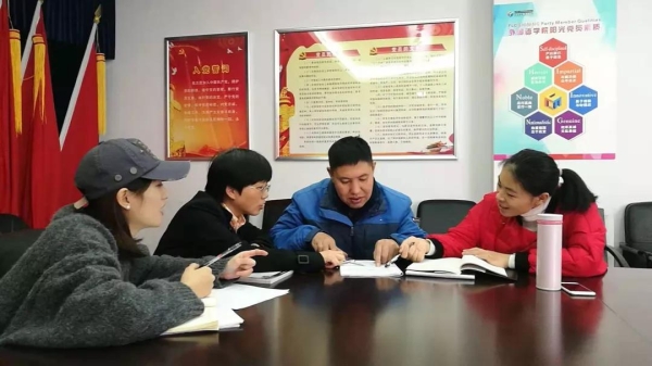 接着,大家又共同研读了中共中央印发的《中共共产党支部工作条例(试行)》,深入了解了党支部的工作原则、基本任务、工作机制和组织生活,并深化了“两学一做”、“三会一课”的学习形式。党支部书记骆巧丽老师认为,《党支部工作条例》对基层党支部建设,运行管理进行了细致的安排,提出了明确要求和标准。“一个支部就是一个战斗堡垒”,因此我们首先要加强党支部的标准化、规范化建设,做到思想自觉,行动自觉。其次,我们要坚持终身学习。要旗帜鲜明地讲政治,自觉用习近平新时代中国特色社会主义思想武装头脑,坚定理想信念,不忘初心、牢记使命。