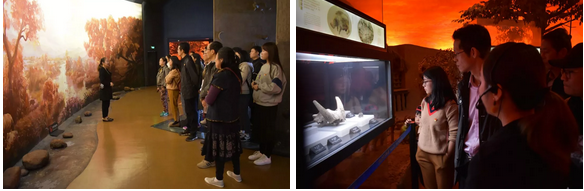 党员活动第一站,抵达的是余姚河姆渡镇,参观中华民族远古文化的发祥地——河姆渡遗址,感受中华文化的源远流长。“长脊、短檐、高床”,河姆渡遗址博物馆的建筑造型根据河姆渡“干栏式”建筑的特点而设计,再配以土红色波纹陶瓦、米黄色毛面墙砖,显得古朴、野趣,与河姆渡文化融为一体。大家先后参观了序厅、“沧海桑田”“日出而作”“湖畔人家”“心灵之声”和“河姆渡猜想”等展厅。通过观赏古老精致的出土文物,感受先民“饭稻羹鱼”的原始生活状态,党员们追本溯源,体悟河姆渡文化的独特魅力,感受中华文化的源远流长,进一步增强文化自信。