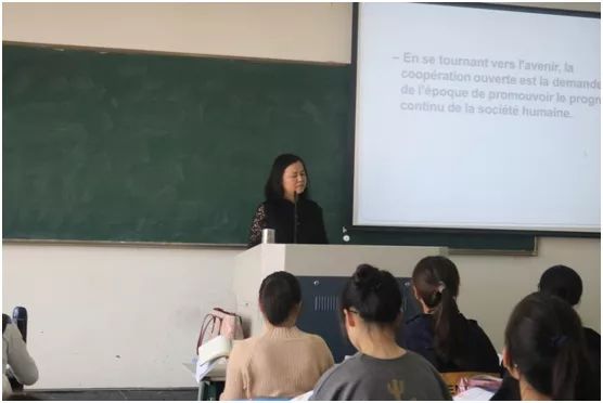 3.比较阅读固立场。课堂最后,罗老师鼓励大家多借助阅读网络媒体资料来提高法语能力。她与大家分享了许多法语报刊杂志,如《世界报》《费加罗报》《解放报》《巴黎竞赛画报》等网站,但同时也推荐了许多中文报刊杂志的法语版,如《人民网》《今日中国》《北京周报》等的法语版网站。她希望学生们一方面能对中外媒体的报道进行比较阅读,挖掘并理解其不同之处,从而巩固自身的政治立场;另一方面也利用中国媒体的法语版文章进行中法文比较阅读,学习具有中国特色事物的中法文官方表达方式。