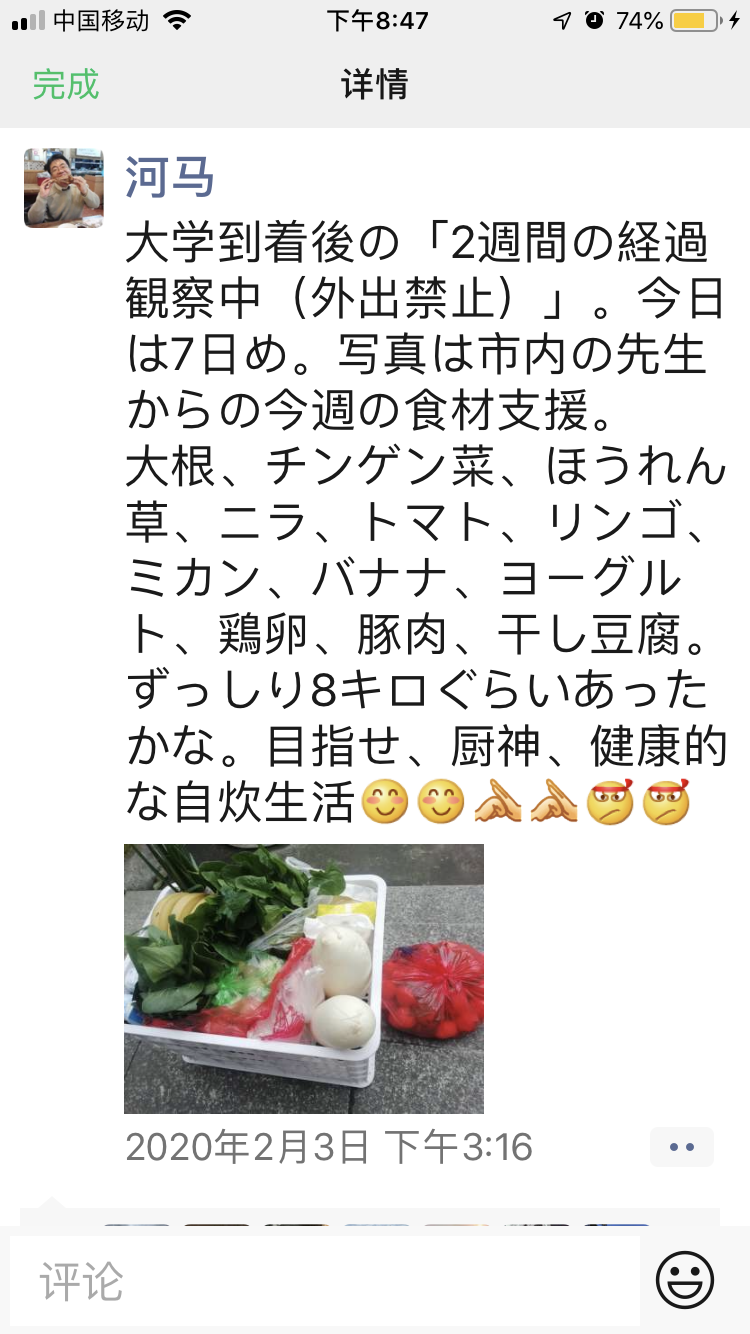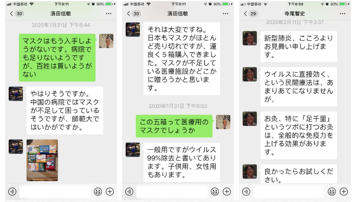 在支部党员以实际行动抗击疫情、互帮互助的同时,国际友人也送来了春天般的温暖。日语系前外教薮博史老师听闻浙江疫情严重后,发来邮件表达了自己的牵挂,表示他可以在日本为师生采购必需用品,并送上了美好祝福。前外教八塚住子老师也发邮件表示了慰问。前外教滨田信敏老师更是把好不容易采购到的五盒口罩寄给了日语系,请我们分发给有需要的人。此外,日语教工支部党员提供无偿语言服务,帮助某企业协调解决口罩等防控物资购置等问题。
