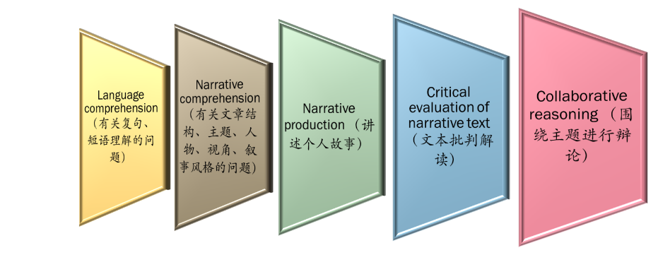 在谈到课程理念时,兰老师指出要借助认知科学指导自己的阅读教学活动。一方面阅读过程中要关注大脑的认知过程,也就是阅读即意义建构,注意叙事类和信息类文本牵涉不同的认知过程。此外,阅读教学应顾全局、抓重点。个人的阅读过程中主要应该调动和发展创造性思维和批判性思维。另一方面,学习是一个社会认知过程,社会认知视角的学习观认为语言是思维的工具,思维是语言内化的话语。教学中应该调动多种互动模式,将责任逐渐下放,注重学生的主动性,总之就是要调动和发展学生的合作性思维。