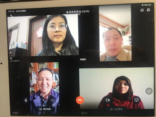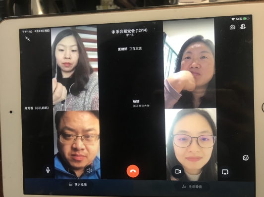 4月24日,翻译专业党支部在钉钉展开了视频会议,共同学习了习近平总书记在浙江考察的讲话精神,并从高校教师和教学的视角探讨了讲话精神对当下教师党员的启示。