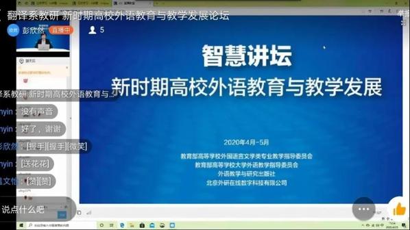 4月25日,翻译系教师共同观看了“新时期高校外语教育与教学发展”智慧讲坛的相关讲座,并进行了线上研讨。活动由翻译系主任桂文泱老师主持,全系教师共同参加。
