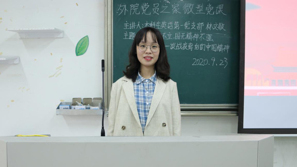 9月23日中午,我院第95次“两学一做”微型党课于23幢101教室开讲。来自本科生英语第一党支部的林文敏同志带来了以“人无精神不立,国无精神不强——谈战疫背后的中国精神”为主题的微型党课。在座学生党员、入党积极分子用心感悟,积极分享,在对“抗疫精神”的研析中不断提高自身党性修养。