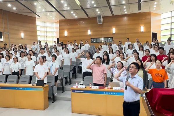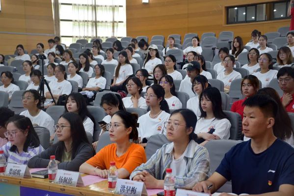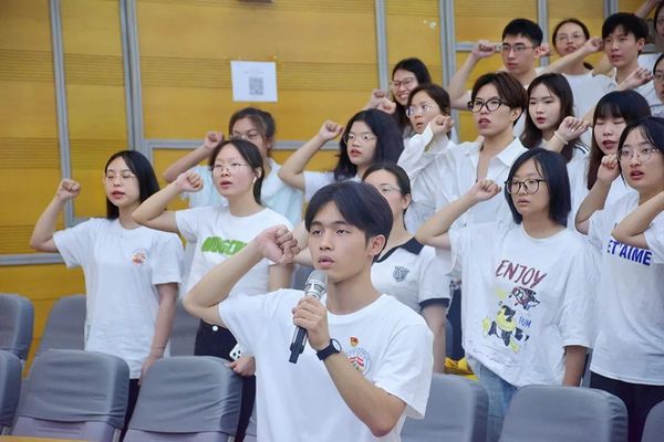 7月1日上午,院党委书记项伟在第五届青年国际领导力训练营开营仪式上以“践行八八战略,争做强国先锋”为题,为暑期社会实践队员们讲授专题党课。报告厅内的气氛庄重热烈,实践队员精神饱满、士气高昂,一枚枚党徽在党员的胸前熠熠闪光。