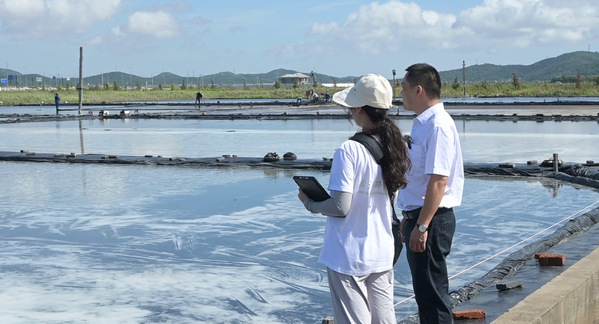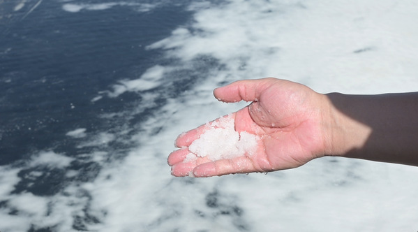丰富的海盐是大海赠予人们的“白金”。为了深入地了解“白金”如何助推经济发展,实践分队来到了浙江绿海制盐责任有限公司,在总经理助理许超锋的带领下,队员们参观了盐场以及生产车间。大家了解到,该公司目前负责生产雪涛日晒自然盐系列、鲜晒海盐系列和岱山贡盐等10余个品种,年产量达2万吨。公司日晒盐的晒制过程保留了最传统的岱山海盐晒制技艺,在岱山仅存的12 名盐农的劳作下,以太阳和风力为能源,晒制出高品质的盐。在这里,传统与科技的融合,让盐的品质和产量得到了保障。