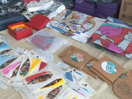 作为舟山的一张金名片,渔民画凭借其强烈的色彩、夸张的设计、饱满的画面等特点展现出独属舟山的海岛风情。非遗传承人郑红飞老师带领队员们参观了画廊中精致的渔民画衍生品,例如衣物、包包、丝巾等生活用品,其产品的设计开发与销售传播,成为了渔民画产业化发展的新模式。当今渔民画衍生产品与旅游业的紧密结合,不但扩大了渔民画的传播范围,也进一步增强其影响力,从而推动渔民画创作的繁荣,产生巨大的经济、社会、文化效益。