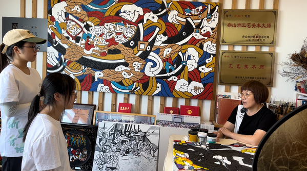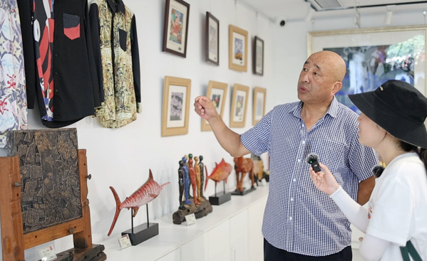 队员们有幸采访到了乡村艺术馆馆长、中国美术家协会会员张高俊老师,进一步了解到了舟山渔民画的发展现状及其和旅游业相结合的发展模式,对“文创+旅游”的发展模式有了更加深入的认知。