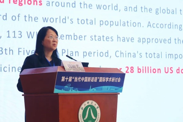 浙江工商大学钱毓芳教授作题为“A Corpus-based Diachronic Discourse Study of Traditional Chinese Medicine in Modern British Newspapers”的主旨发言。