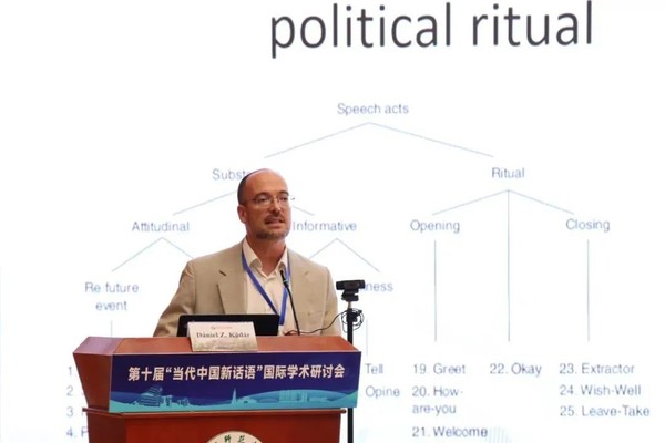 大连外国语大学启航学者讲座教授、欧洲科学院院士 Dániel Z. Kádár作题为“On the Advantages of a Bottom-Up Approach in Discourse Analysis — Cases from Chinese”的主旨发言。