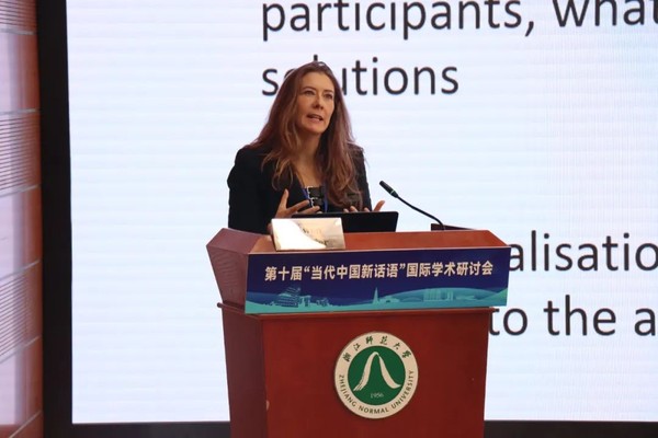 浙江师范大学“双龙学者”特聘教授、唐丽萍教授作题为“Counterhegemonic Discursive Practices of Chinese Diplomatic Communication through the Foreign Press”的主旨发言。