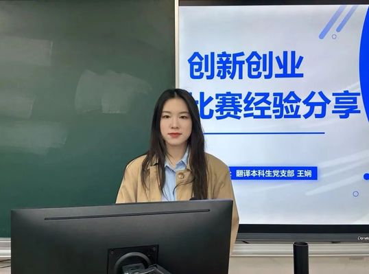 在本次先锋大讲堂中,来自翻译本科生党支部的王娴分别从信息获取与组队、选题与课题申报、成果转化与拓展、外语学子的竞争优势4个方面分享了创新创业比赛的相关经验。王娴提到,赛事资讯来源多样,校教务处官网、班群消息、校赛交流群等均为常见的信息获取渠道。对于课题的选择与申报工作,她以思维导图的形式详细呈现了包括调查、统计、文本撰写、答辩等在内的前期准备工作中需要考虑并落实的要点。随后,王娴深入剖析“转化与拓展实践成果”的方式方法。以创意组为例,她在介绍评分项目和评审要点的同时,鼓励大家在原有成果的基础上发散思维,将创造性想法现实化、商业化、产业化。在分享的最后,王娴对外院学子的优势进行充分分析,在明确外院学子定位的基础上,鼓励大家大胆尝试,涉足新领域,增强竞争力,展现灼灼风采。