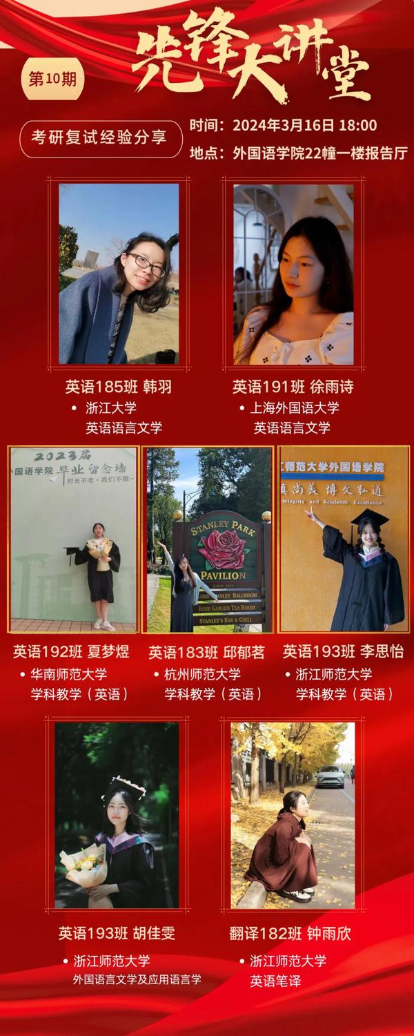 关关难过关关过,前路漫漫亦灿灿。本期先锋大讲堂告一段落,希望同学们从各位前辈的嘱托与分享中汲取经验,用汗水浇灌理想,以微笑相约未来。愿研途生花,得偿所愿!