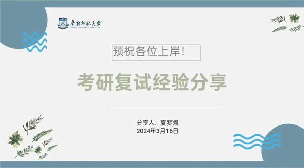 来自华南师范大学学科教学(英语)专业2023级的夏梦煜从复试招生、考察内容和个人经验三个方面进行了分享。夏梦煜介绍,华南师范大学的复试一般包括专业笔试、专业面试和外语口语三个环节。她提醒道,根据初复试总分计算方法,初试分数差距将大幅度缩小,因此复试得分极为关键。夏梦煜提到,笔试和面试会针对性地考察语言学、二语习得、英语教学与改革、科研基础、为人处事与教育机智五个方面。对于这一方案,她建议同学们在准备复试时,融合新课标理念,重视重点概念和理论,结合教资考试内容,融会贯通、相辅相成;同时她推荐了《语言学教程》等书目供大家参考。分享最后,夏梦煜建议大家复习宜早不宜迟,复习时不死记、不全记、抓要点,找到适合自己的思路,以不变应万变。