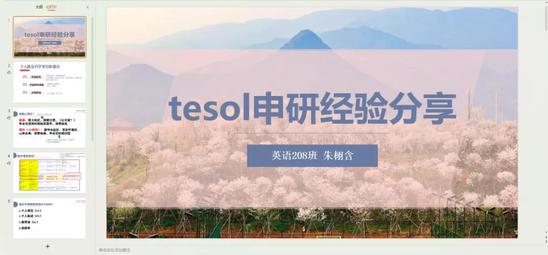 成功拿到香港大学、香港中文大学、爱丁堡大学对外英语教学专业offer的朱栩含学姐从前期择校、中期材料准备、后期投递三个方面进行详细介绍,客观分析和比较港澳和国外的利弊,综合考虑语言氛围、国内认可度、留学体验、招聘方便等。她还给大家分享了自己的个人简历、个人陈述等,强调了写个人陈述时要看清不同院校的要求、侧重点,在开放申请后尽可能早地投递相关材料。无论是读研还是就业都因人而异,最重要的是尽早做好职业规划,了解就业导向,提升个人背景。