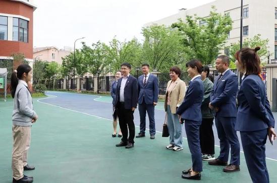 随后,调研组来到了义乌群星外国语学校,该校吴剑校长、刘友富校长等人热烈欢迎调研组的来访,并带领大家参观了学校教室、操场、阅读吧等,同时组织学生进行双语介绍,充分展现了学校的外语特色和文化特色。接着,调研组与义乌群星外国语学校相关领导围绕基础教育对接、人才培养改革等展开了深入探讨,详细了解了义乌群星外国语学校的教学环境、课程设置、办学情况以及对外语人才的需求情况。外国语学院党委书记项伟对义乌群星外国语学校鲜明的外语特色、以学生为中心的理念以及校园文化尤其是中华传统文化上墙等表示认同与赞赏,并希望未来能够进一步探索合作的机会,加强沟通与联系。