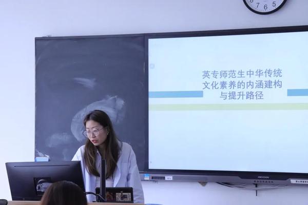 钱依婷同学以《英专师范生中华传统文化素养的内涵建构与提升路径》为题进行汇报。论文从英专师范生传统文化素养的内涵建构展开,以《课标》提出的文化知识教学维度为依据,将文化素养定义为三部分,并在此基础上梳理出教师传统文化素养的三条提升路径。
