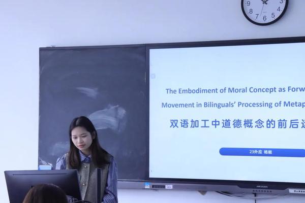 杨能同学进行了题为The Embodiment of Moral Concept as Forward and Backward Movement in Bilinguals’ Processing of Metaphorical Expressions的汇报,探究道德概念与前后运动表征是否存在隐喻联结,并探讨中英双语者在双语加工中道德隐喻表征的异同。