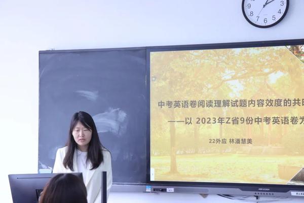 林潘慧美同学做了题为《中考英语卷阅读理解试题内容效度的共时研究》的汇报。论文以2023年某省9份中考英语卷阅读理解试题为研究对象,采用Bachman和Palmer的测试任务特征框架为基准,从语篇输入和预期回答两个维度对其内容效度进行共时研究,最后就研究结论提出具体建议。
