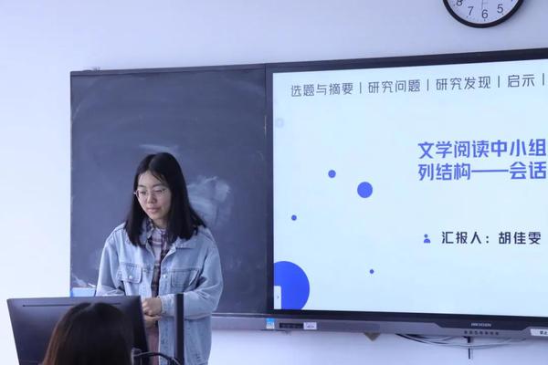 胡佳雯同学进行了题为《文学阅读中小组讨论情节的序列结构——会话分析的视角》的汇报,归纳了小组讨论中对文学文本的情节进行语篇分析的四种基本序列及其相应的前拓展、中间拓展和后拓展结构,就如何从序列结构上更好地促进小组讨论提出相应建议。