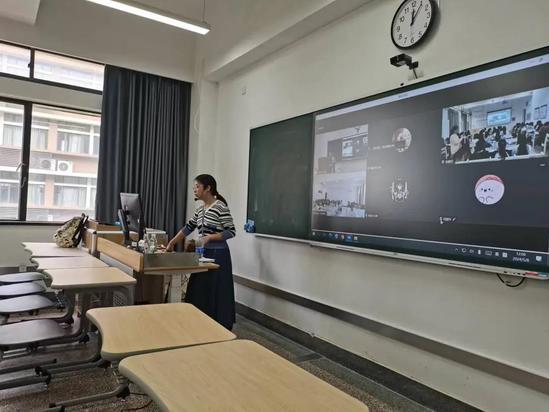 为积极响应教育部慕课西行号召,浙江师范大学外国语学院与新疆师范大学外国语学院,通过腾讯会议在线平台,达成“慕课西行-空中同步课堂”教育教学共建计划。5月8日上午,两校开展了异地共上一堂外语课的同步直播联动,由浙江师范大学外国语学院章莉老师主讲《英语演讲》课程,新疆师范大学外国语学院英语系主任刘韶华老师,任课教师吴曦和木丽迪尔老师,英语专业23-1班和23-2班共82名同学参与了课程的同步学习和实时互动,师生共同分享英语演讲技法。